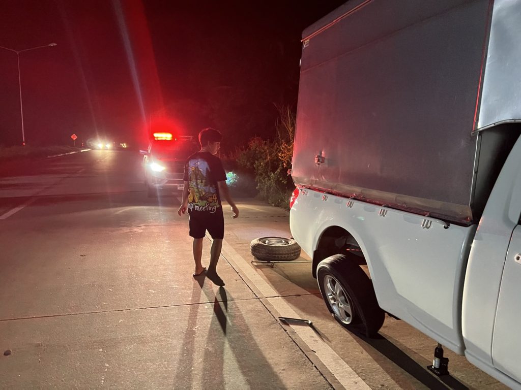 ว.4 ช่วยเหลือประชาชน รถยนต์(ยางแตก) บริเวณถนนอรุณประเสริฐ กม.300-301 ขาเข้าจว.อำนาจเจริญ จึงได้เรียกช่างให้มาเปลี่ยนยางรถยนต์ ประชาชนเดินทางต่อไปได้