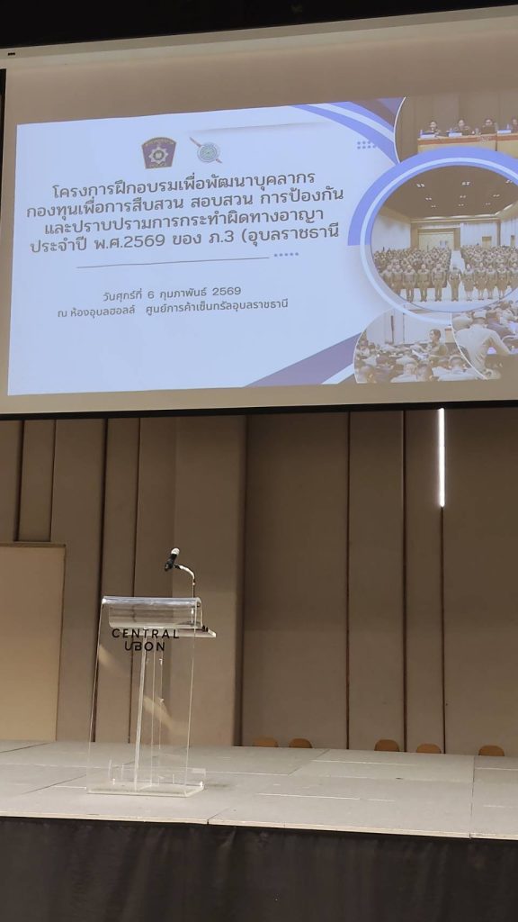 6 กุมภาพันธ์ 2569 เวลา 08.30 น. พ.ต.อ.นพพสิษฐ์ จำปารัตน์ ผกก.สภ.น้ำปลีก ได้เดินทางไปประชุม เรื่องโครงการฝึกอบรมเพื่อการสืบสวน สอบสวน การป้องกันและปราบปรามการกระทำความผิดทางอาญา ประจำปี พ.ศ.2569 ของ ภ.3 ณ ห้องอุบลฮอลล์ ศูนย์การค้าเซ็นทรัลอุบลราชธานี