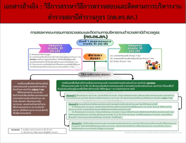 4. ตรวจสอบติดตามและประเมินผลการปฏิบัติงานของข้าราชการตำรวจในสถานีตำรวจให้เป็นไปตามนโยบายของคณะกรรมการนโยบายตำรวจแห่งชาติ (ก.ต.ช.)